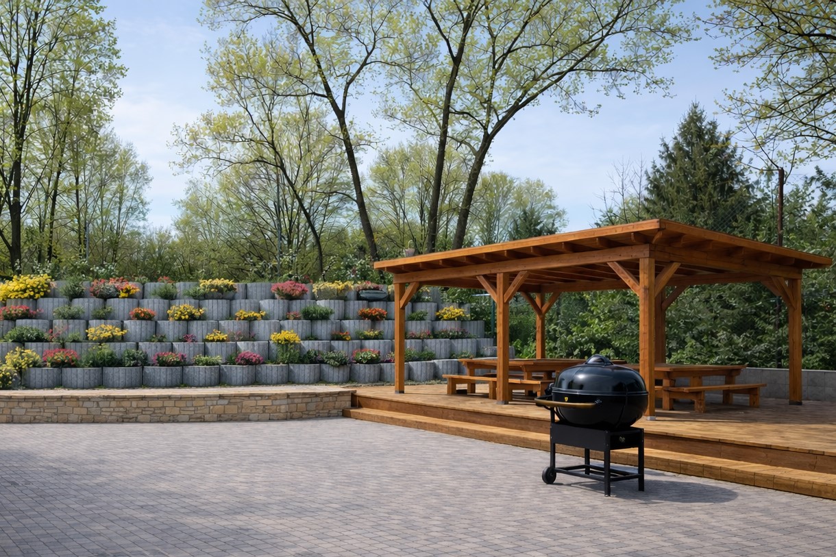 Za domem se nachází uzavřený venkovní prostor s altánkem, posezením a grilem, kde mohou obyvatelé trávit čas venku, setkávat se nebo se věnovat drobnému zahradničení. Rezidenti mohou využívat soukromá parkovací místa uvnitř areálu a také veřejné parkování před domem. Celý areál je oplocený a uzamykatelný, což přispívá k pocitu klidu a bezpečí.